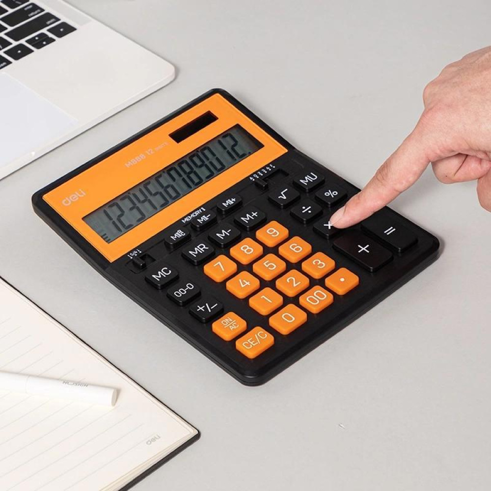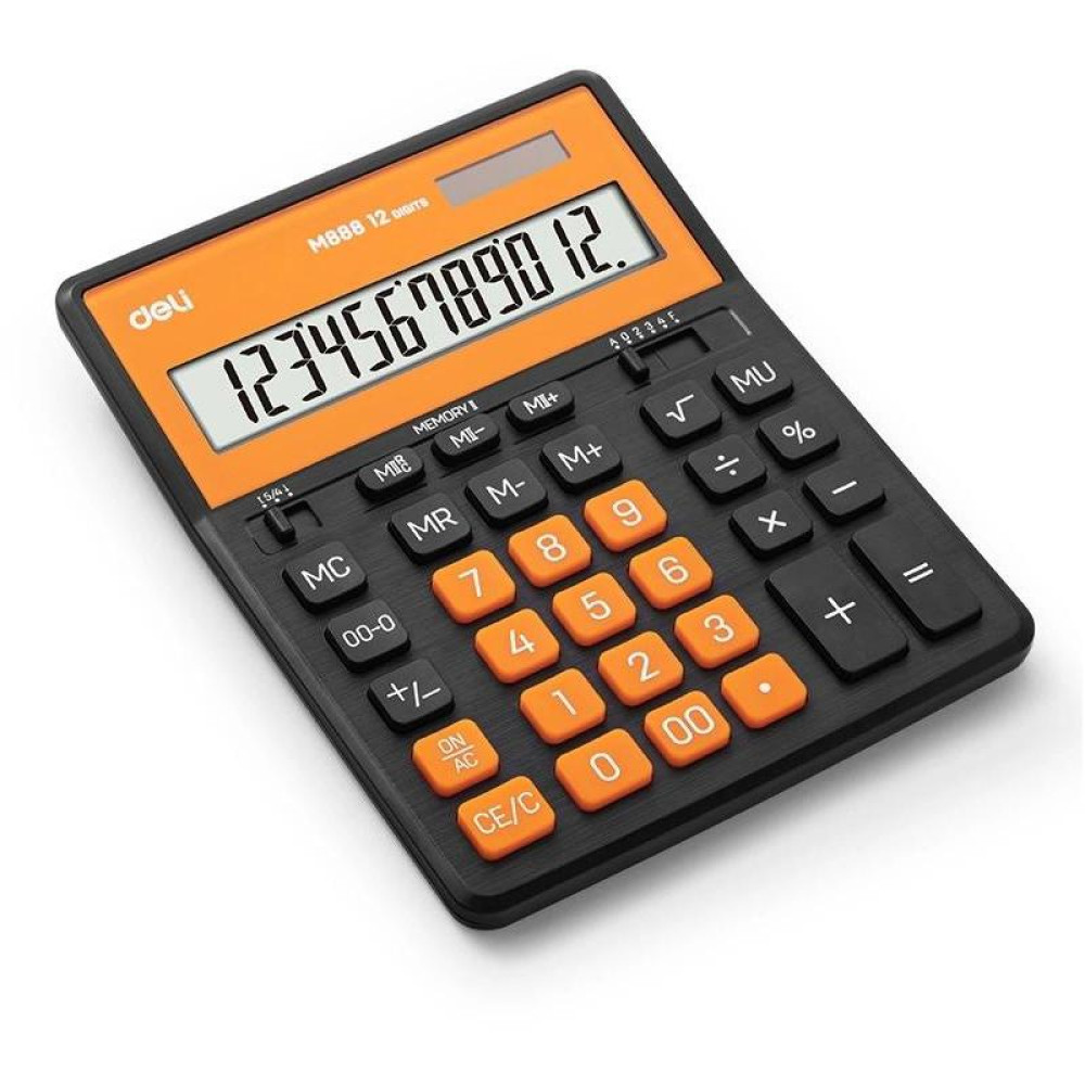 Калькулятор настольный Deli EM888A-BK-OR черный/оранжевый 12-разр.