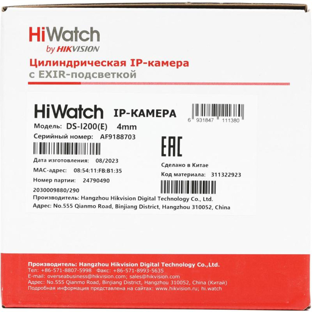 Камера видеонаблюдения IP HiWatch DS-I200(E)(4mm) 4-4мм цв. корп.:белый