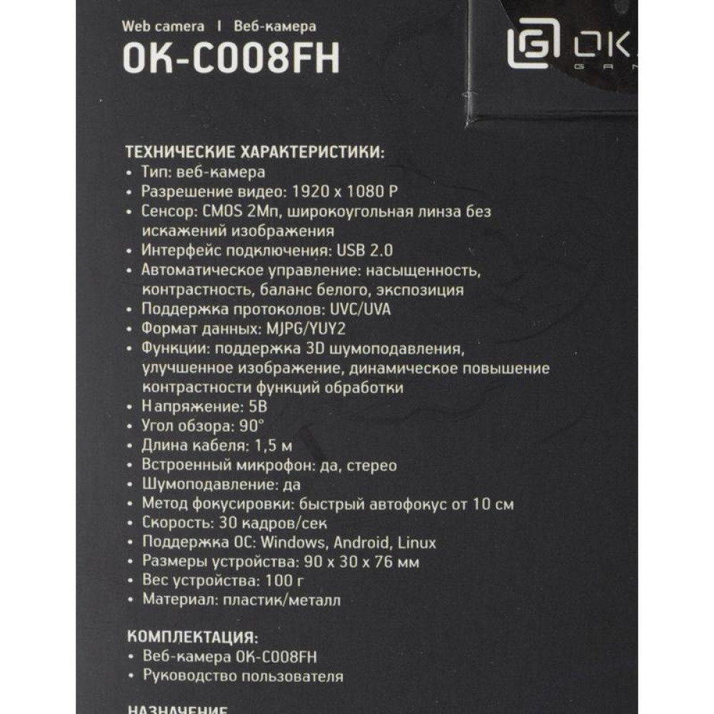 Камера Web Oklick OK-C008FH черный 2Mpix (1920x1080) USB2.0 с микрофоном