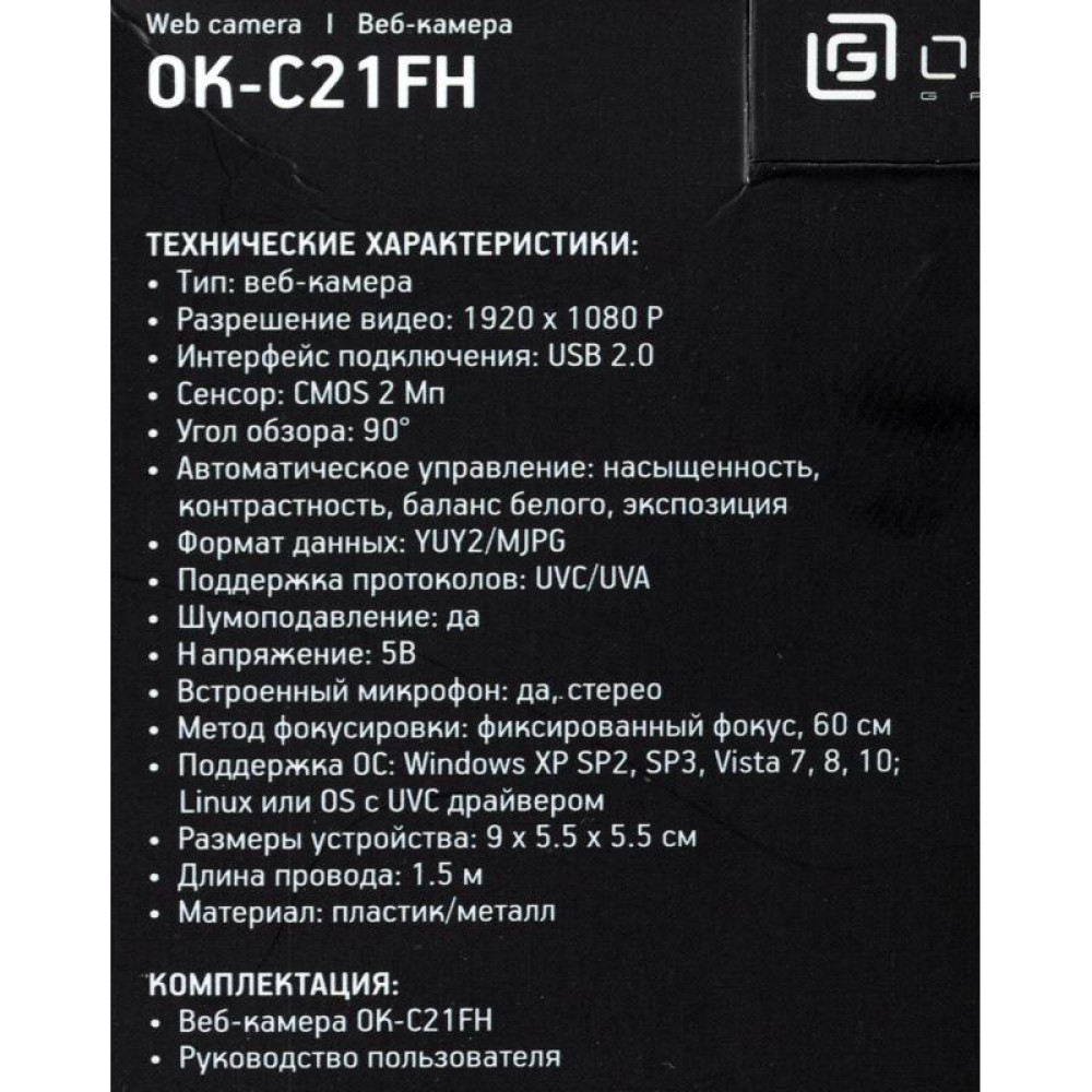 Камера Web Oklick OK-C21FH черный 2Mpix (1920x1080) USB2.0 с микрофоном