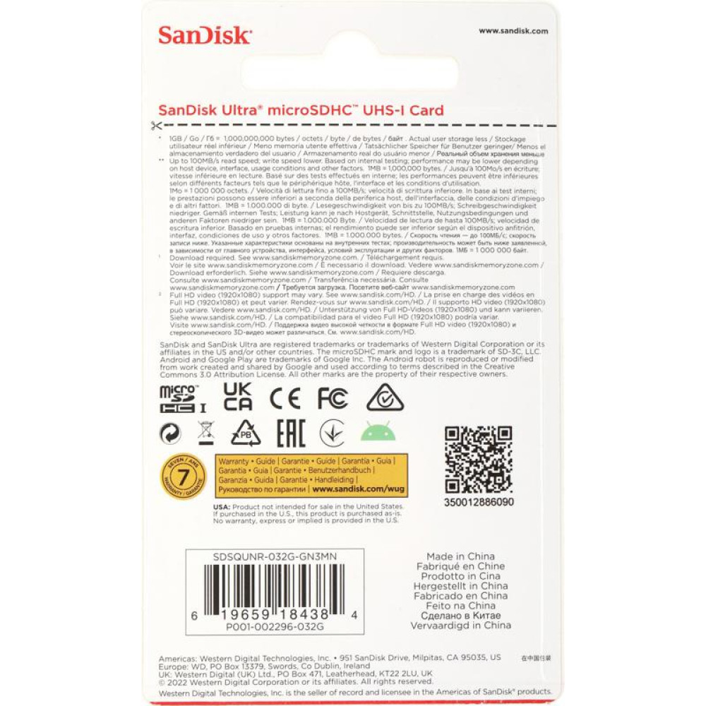 Карта памяти SanDisk MICRO SDHC 32GB UHS-I SDSQUNR-032G-GN3MN