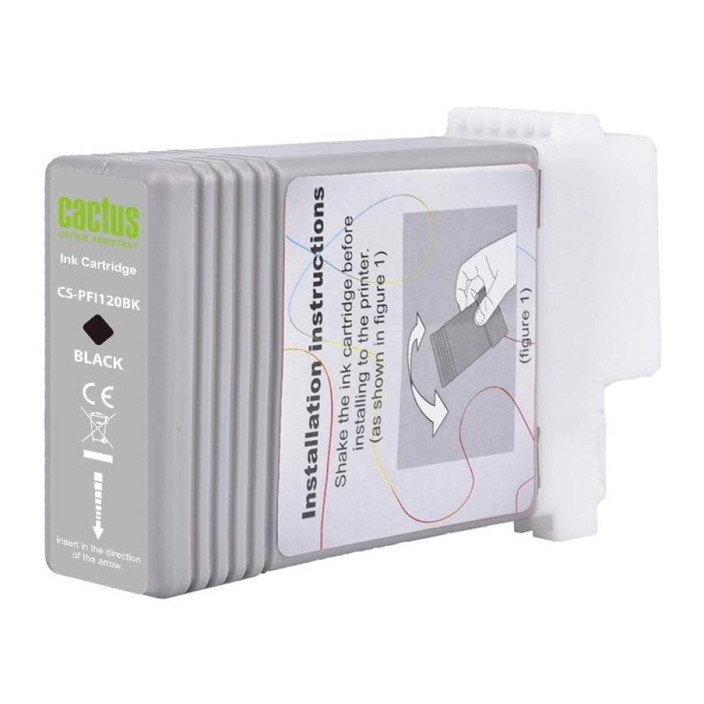 Картридж струйный Cactus CS-PFI120BK PFI-120 BK черный пигментный (130мл) для Canon imagePROGRAF TM-200/TM-205/TM-300/TM-305/TM-350 с чипом