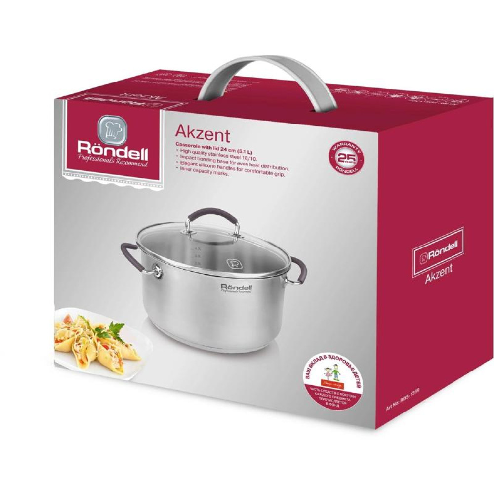 Кастрюля/ Кастрюля Rondell Akzent RDS-1389 5.1л. d=24см (с крышкой) стальной