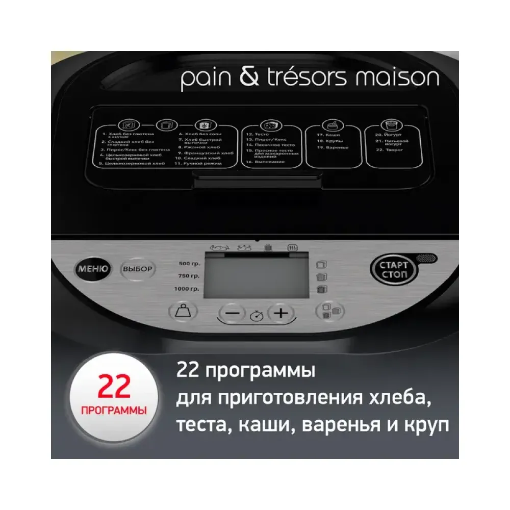 Хлебопечка Pain Trsors — это не просто устройство для приготовления хлеба. С её помощью вы можете приготовить тесто для пиццы и пасты, варенье, кашу или крупы, а также молочные продукты.