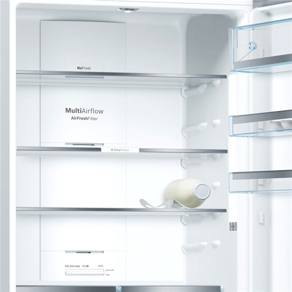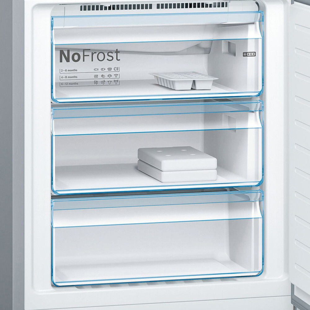 Двухкамерный холодильник Bosch KGN49LB30U выполнен в черном цвете и прекрасно впишется в любой современный интерьер. Система PerfectFit дает возможность расположить модель вплотную к стене или к другим бытовым приборам, благодаря чему сохраняется драгоценное место на кухне, которое можно использовать с пользой. Яркая светодиодная подсветка равномерно освещает внутреннее пространство прибора и гарантирует комфортную эксплуатацию. Кроме того, светодиодные лампы потребляют меньше электроэнергии, чем обычные лампы накаливания, и служат в течение всего срока службы изделия. Многопоточная система охлаждения обеспечивает равномерное распределение воздуха по каждой зоне, что предупреждает быструю порчу деликатесов. Блокировка ограничивает доступ детей к функционалу. Технология No Frost исключает вероятность появления наледи на стенках.