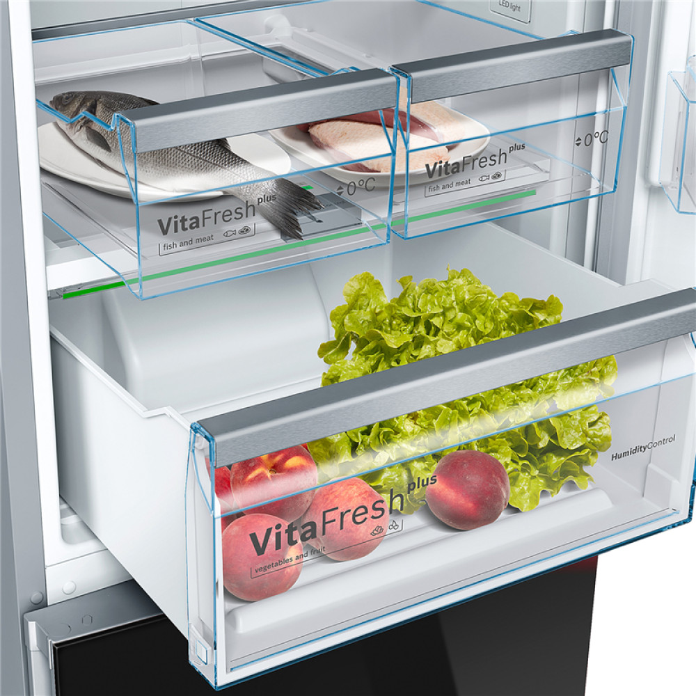 Холодильник BOSCH KGN49LB30U Serie 6, Full NoFrost, Габариты 203x70x67, Общий пол. объем: 435 (х:330, м:105), Черный под стеклом, Цифровой LCD дисплей, Утопленные ручки во всю высоту, Multi Airflow