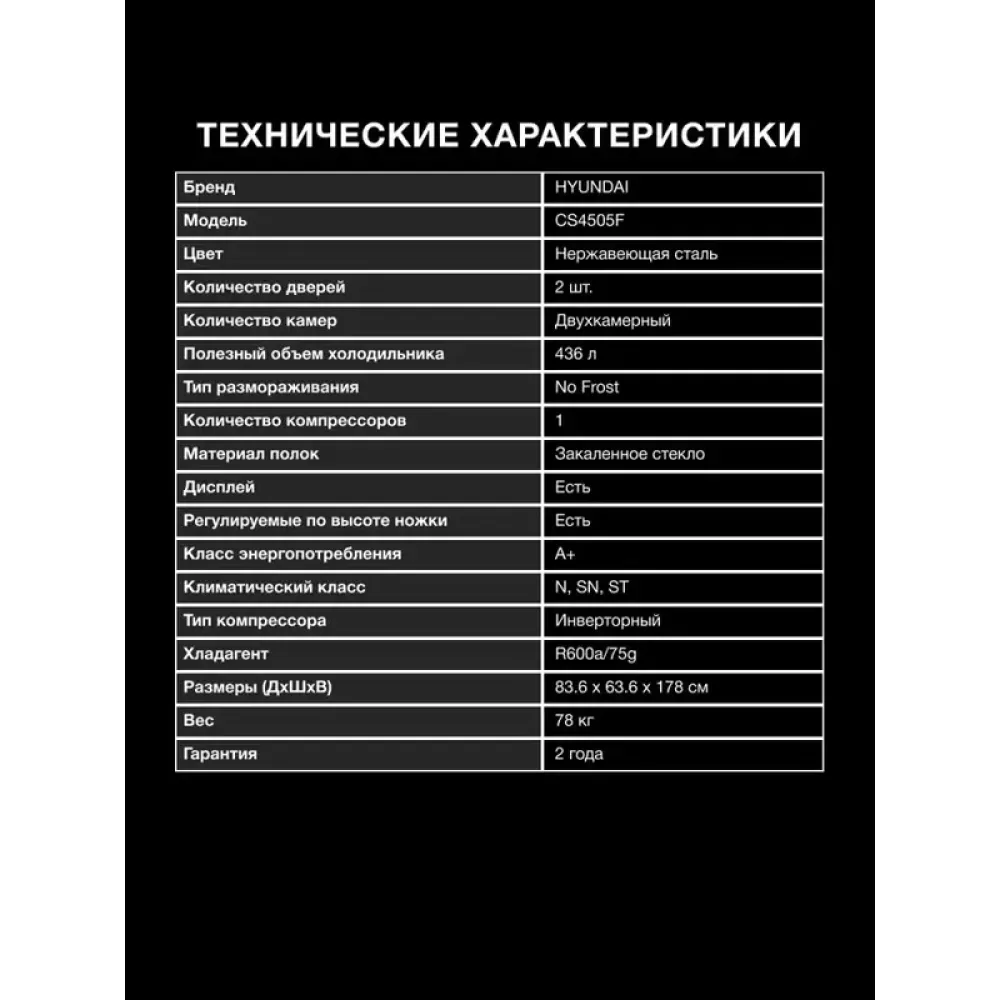 Холодильник Hyundai CM5005F 3-хкамерн. черное стекло инвертер