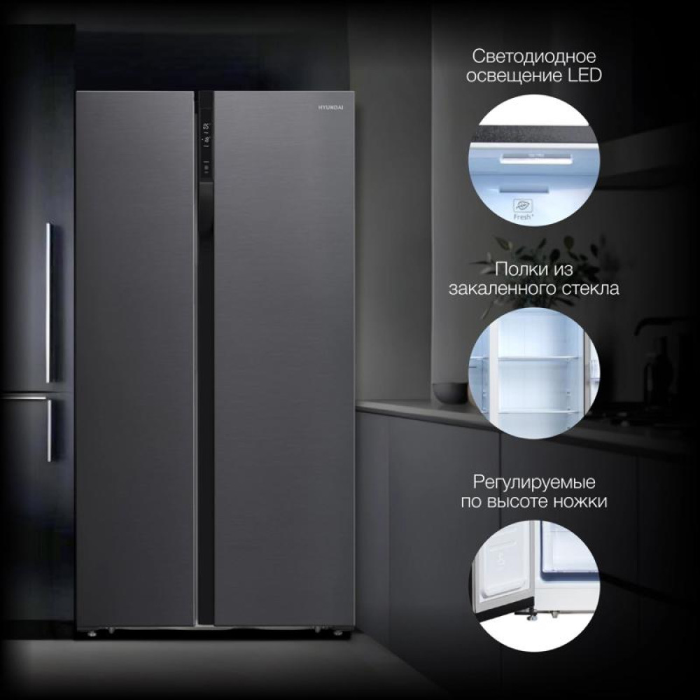 Холодильник Hyundai CS5003F 2-хкамерн. черная сталь
