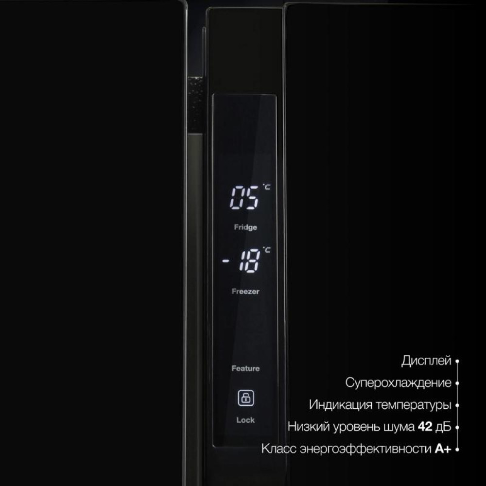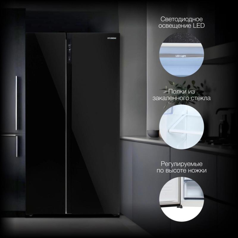 Холодильник Hyundai CS5003F 2-хкамерн. черное стекло
