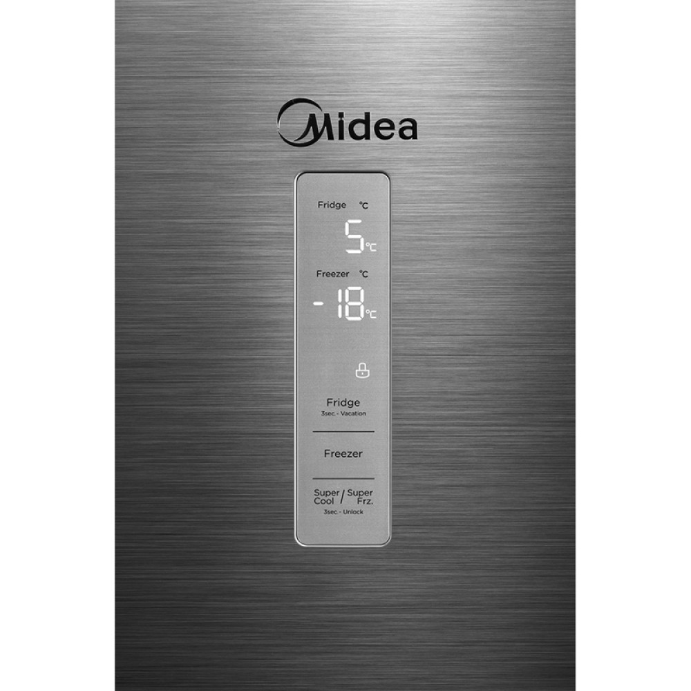 Холодильник MIDEA/ Холодильник MIDEA, отдельностоящий, полезный объем 346 л (223/123), NoFrost, сенсорное управление, дисплей, суперохлаждение, суперзаморозка, режим "Отпуск", энергоэффективность А+, цвет нержавеющая сталь