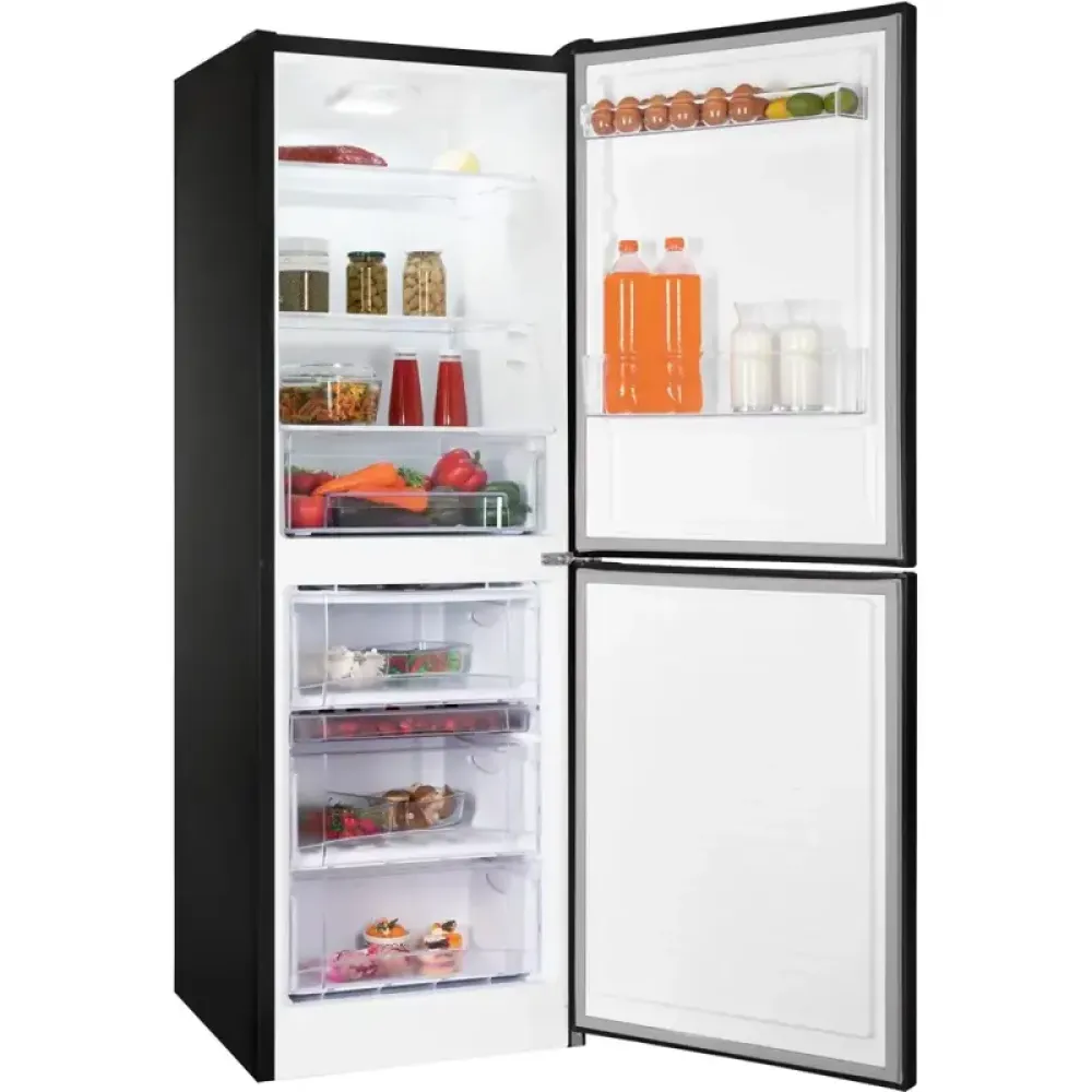 Двухкамерный отдельностоящий холодильник NORDFROST NRB 151 B с нижним расположением морозильной камеры имеет общий объем 285 л.Устройство с системой размораживания DeFrost характеризуется высоким классом энергоэффективности А+ и низким уровнем шума до 40 дБ.Морозильная камера объемом 115 л имеет ручную систему размораживания и мощность заморозки до 4,5 кг в сутки.Холодильник оснащен LED-освещением в холодильной камере, которое не выделяет тепло во внутреннее пространство холодильника, а также отличается экономичностью и долгим сроком службы.Диапазон температурного режима в холодильной камере 0…+8°С, в морозильной не выше -18°С.В холодильнике NORDFROST NRB 151 B продуманное для удобства пользователя внутреннее пространство: - ламинированная внутренняя поверхность холодильника с антибактериальным покрытием;- 3 полки из закаленного стекла в холодильном отделении;- большой выдвижной ящик для овощей и фруктов;- 2 полки на двери;- 3 прозрачных ящика в морозильном отделении позволяют поместить и длительно хранить большие куски мяса, курицу, полуфабрикаты и другие объемные замороженные продукты;- лоток для заморозки ягод.Внутренняя посуда холодильника имеет красивый серебристый отлив и инфографику на ящиках и дверных полках.При необходимости чистки или замены уплотнитель двери легко снимается и ставится обратно.Возможность перенавешивания двери создает удобство открывания с нужной стороны.Холодильник в современном исполнении подходит под любой дизайн кухни.Горизонтальные интегрированные ручки задают стиль и комфортное пользование устройством.Модель выполнена в черном матовом цвете.Гарантия на холодильник NORDFROST – 2 года.