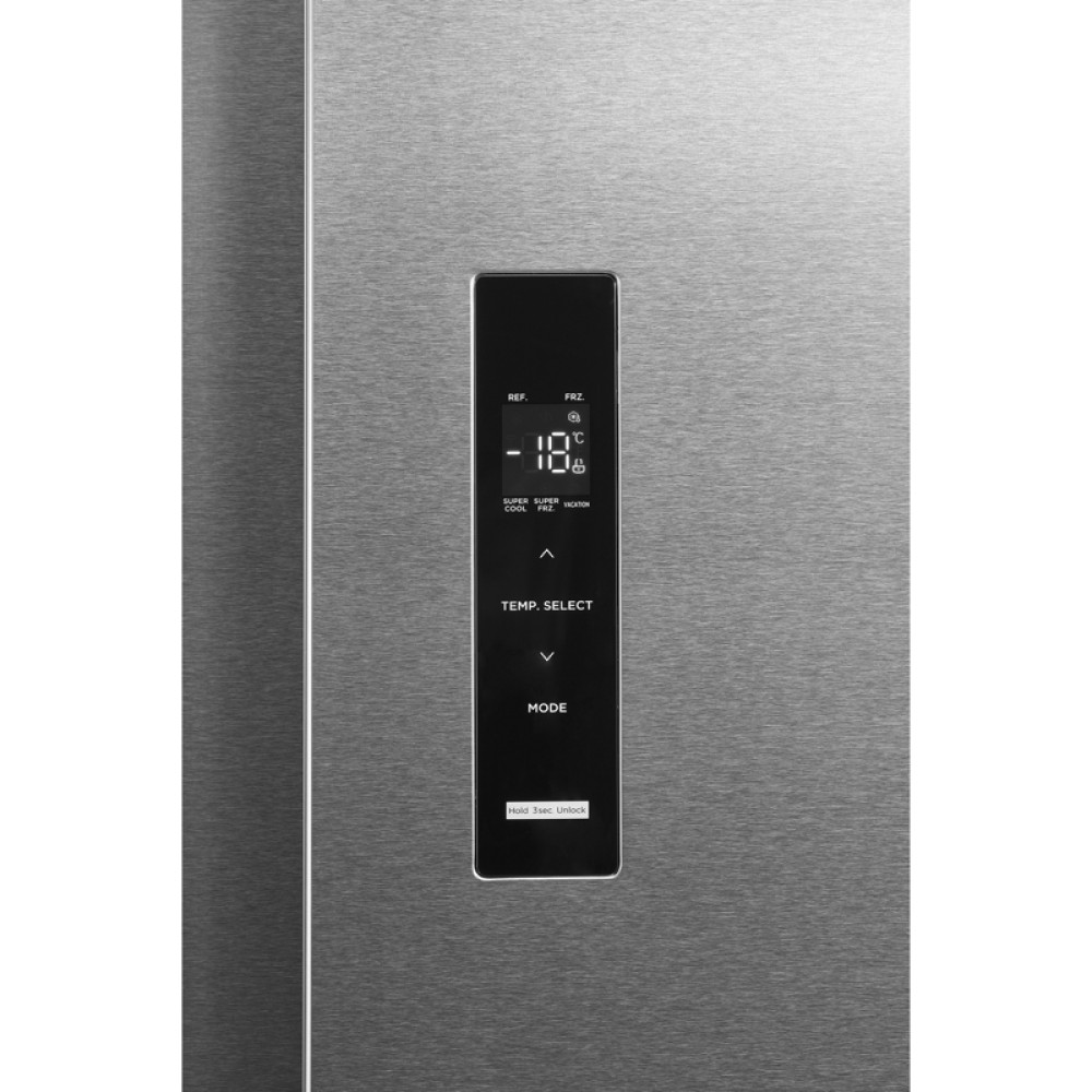 Внешний дисплей с индикацией температуры позволяет легко контролировать настройки. Функции суперзаморозки и суперохлаждения быстро подготавливают прибор к загрузке новых продуктов, а режим «Отпуск» переводит холодильник в экономный рабочий режим. Безопасность обеспечивают звуковая индикация открытой двери и блокировка от детей, предотвращающая случайное изменение настроек.