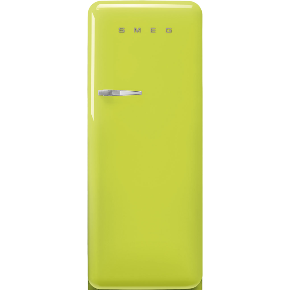 SMEG FAB28RLI5 — яркий представитель ретро-стиля 50-х годов в современном исполнении. Сочный цвет лайма в сочетании с характерными округлыми формами и хромированными деталями создает неповторимый винтажный образ, который станет настоящим украшением любой кухни.