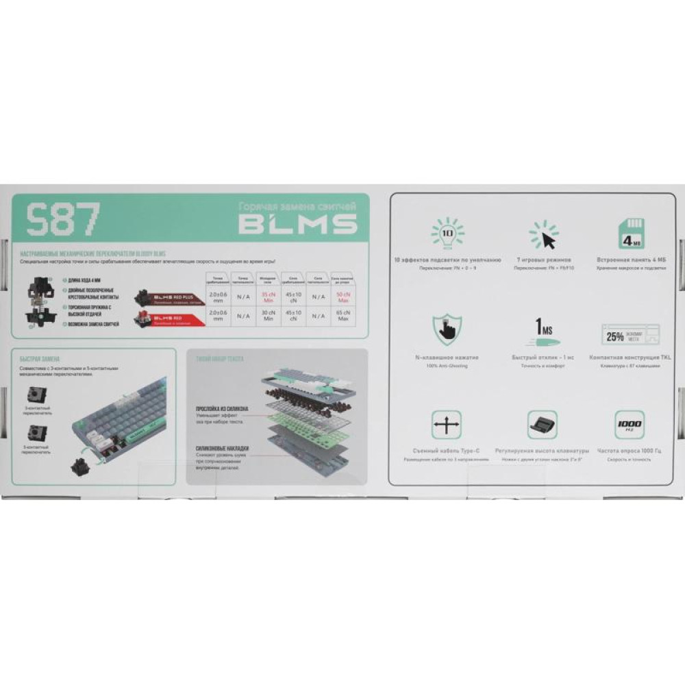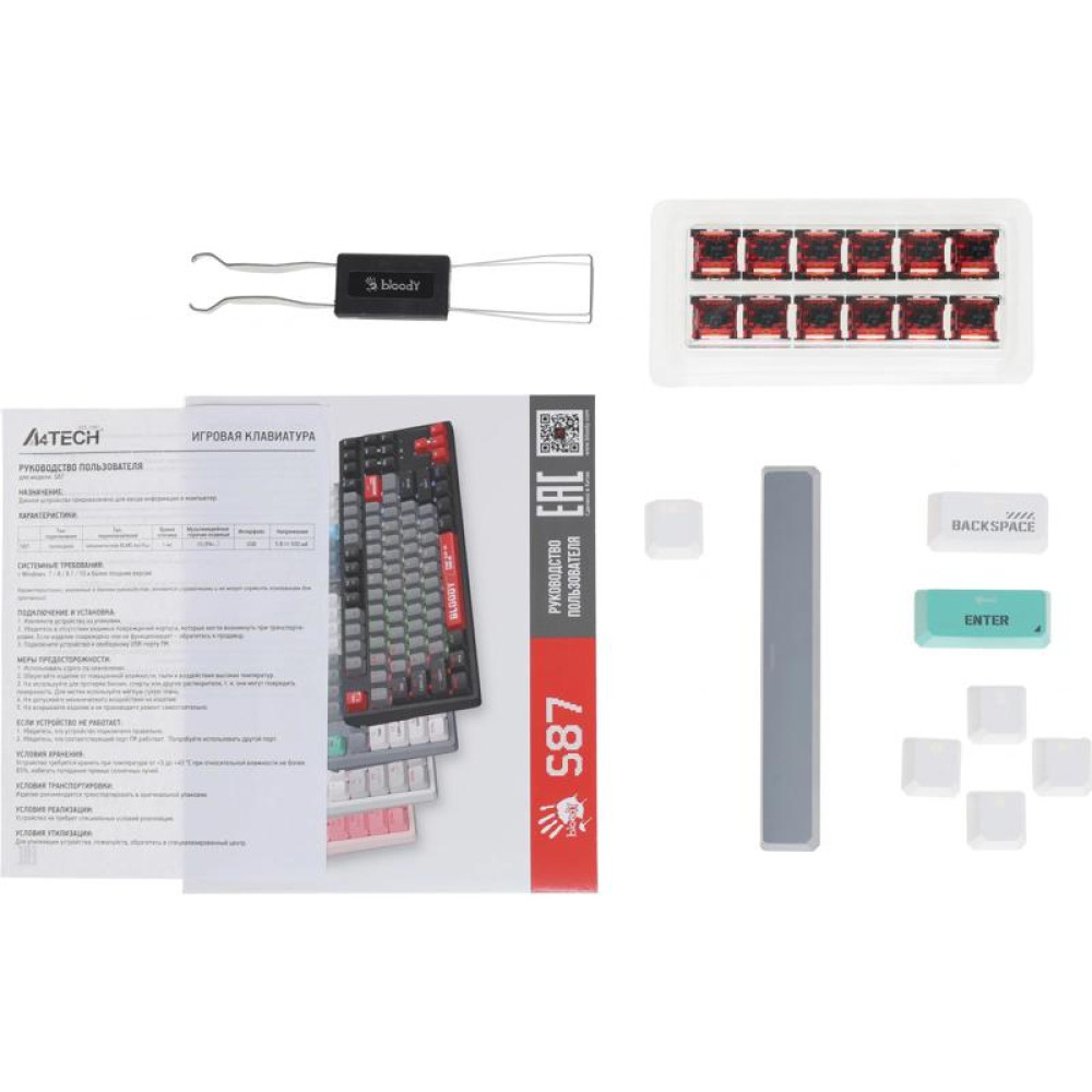 Клавиатура A4Tech Bloody S87 Energy механическая серый/зеленый USB for gamer LED (S87 USB ENERGY ASH)