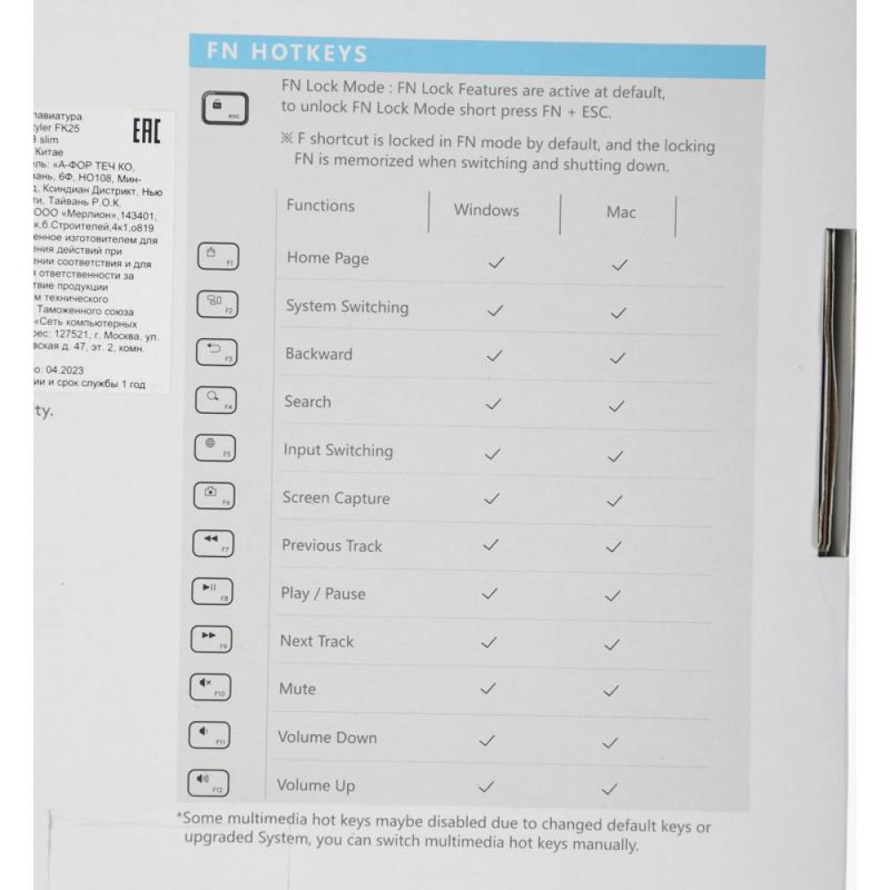 Клавиатура A4Tech Fstyler FK25 белый/серый USB slim