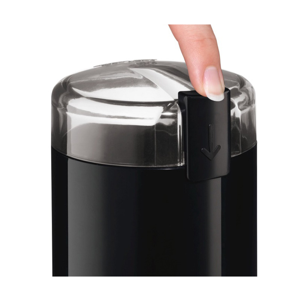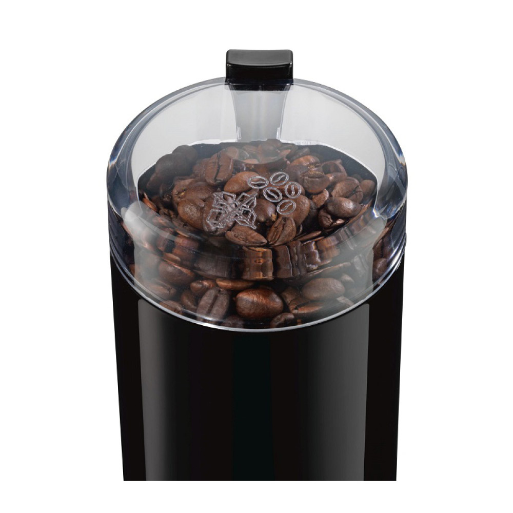 Кофемолка также оснащена предохранительным выключателем, который обеспечивает дополнительную безопасность в процессе использования. Устройство не начнет работать, если крышка не закрыта должным образом, что помогает избежать случайных происшествий. Это важный аспект для тех, кто ценит свою безопасность на кухне.