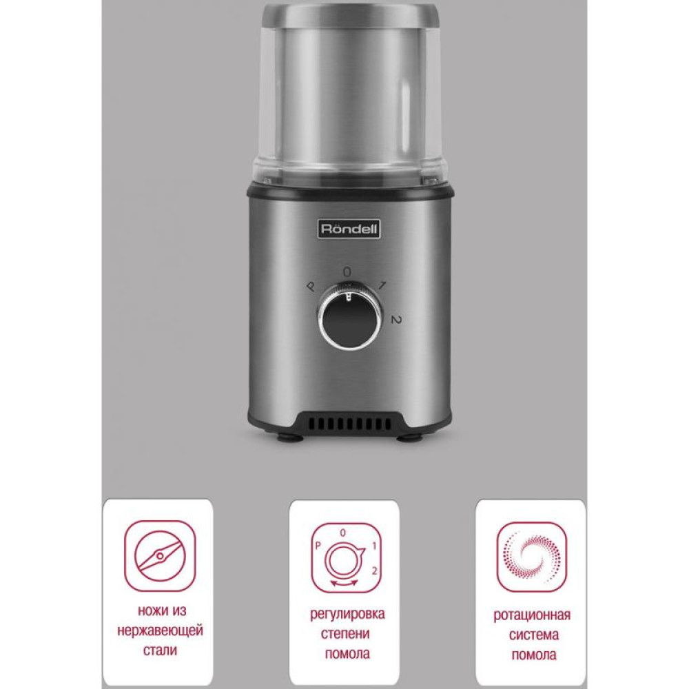 Кофемолка Rondell RDE-1150 350Вт сист.помол.:ротац.нож вместим.:110гр серебристый