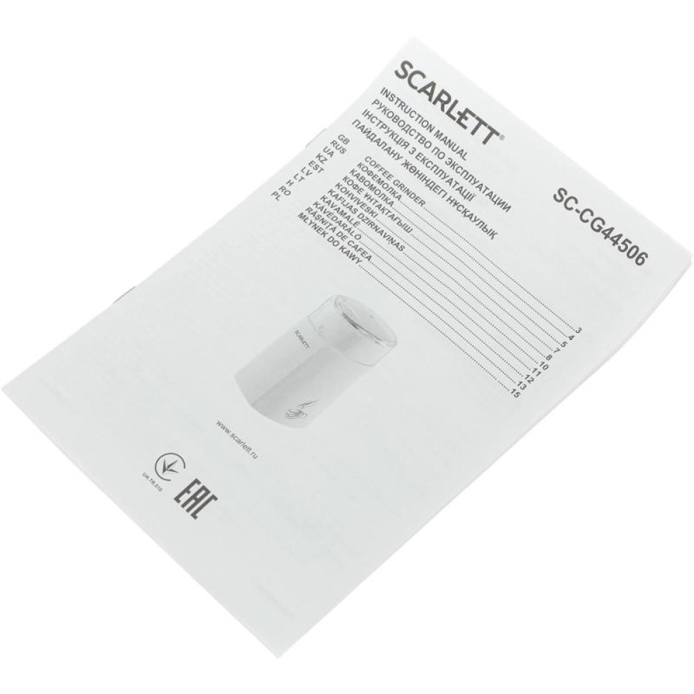 Кофемолка Scarlett SC-CG44506 150Вт сист.помол.:ротац.нож вместим.:60гр белый