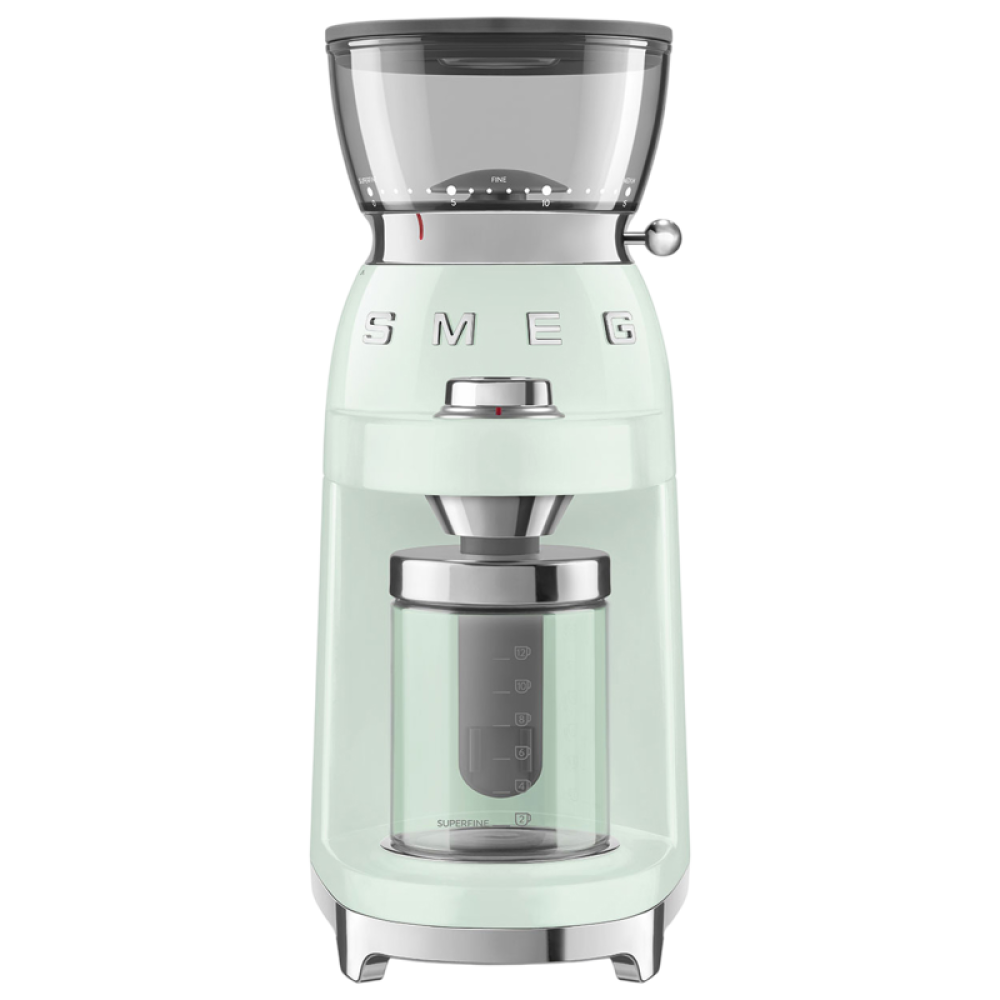 Кофемолка SMEG, стиль 50-х г.г., 15 уровней помола, конические жернова, объем контейнера для кофе 240 г, цвет пастельный зеленый