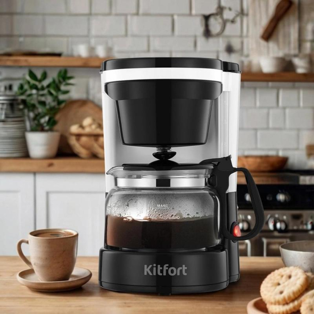 Кофеварка капельная Kitfort КТ-7486 550Вт черный/белый