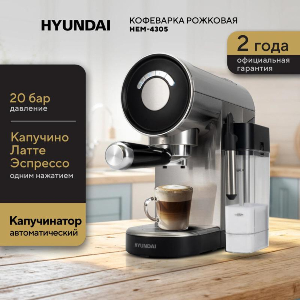 Кофеварка рожковая Hyundai HEM-4305 1350Вт серебристый/черный