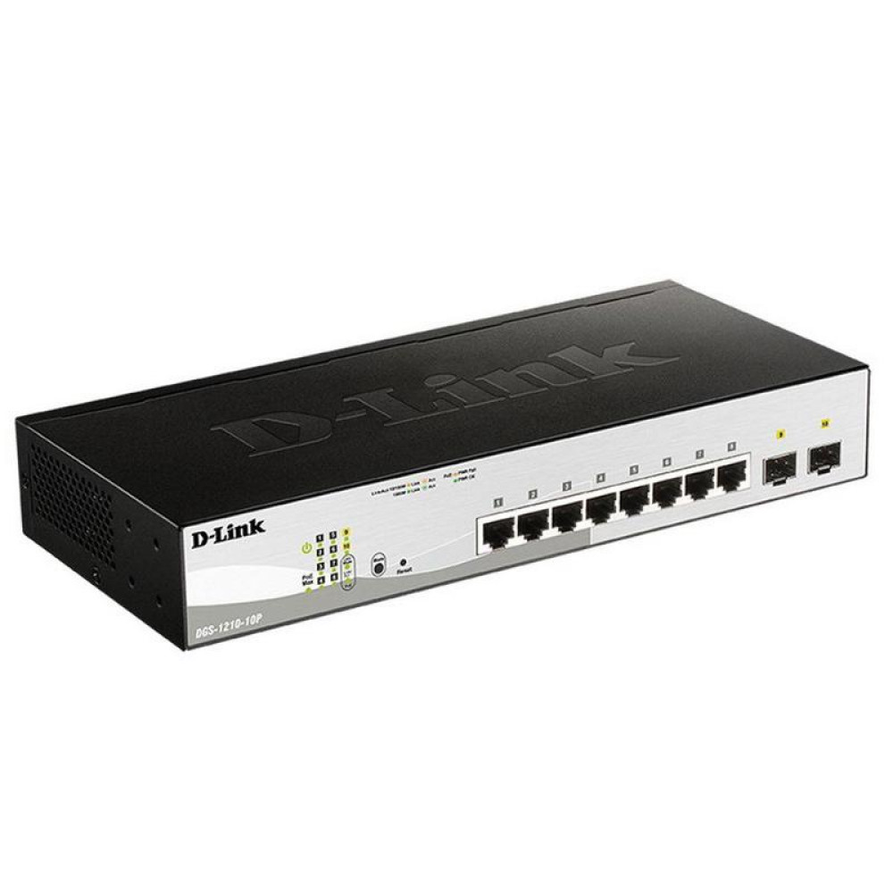Коммутатор D-Link DGS-1210-10P/FL2A Управляемый L2 коммутатор с 8 портами 10/100/1000Base-T и 2 портами 1000Base-X SFP (8 портов PoE 802.3af/at, PoE бюджет 65 Вт)