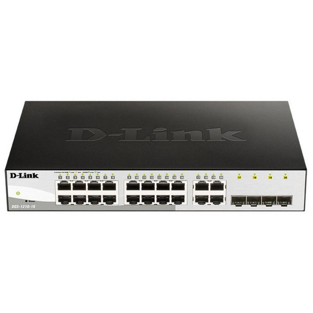 Коммутатор D-Link DGS-1210-16/G2A Настраиваемый L2 коммутатор с 16 портами 10/100/1000Base-T и 4 комбо-портами 100/1000Base-T/SFP