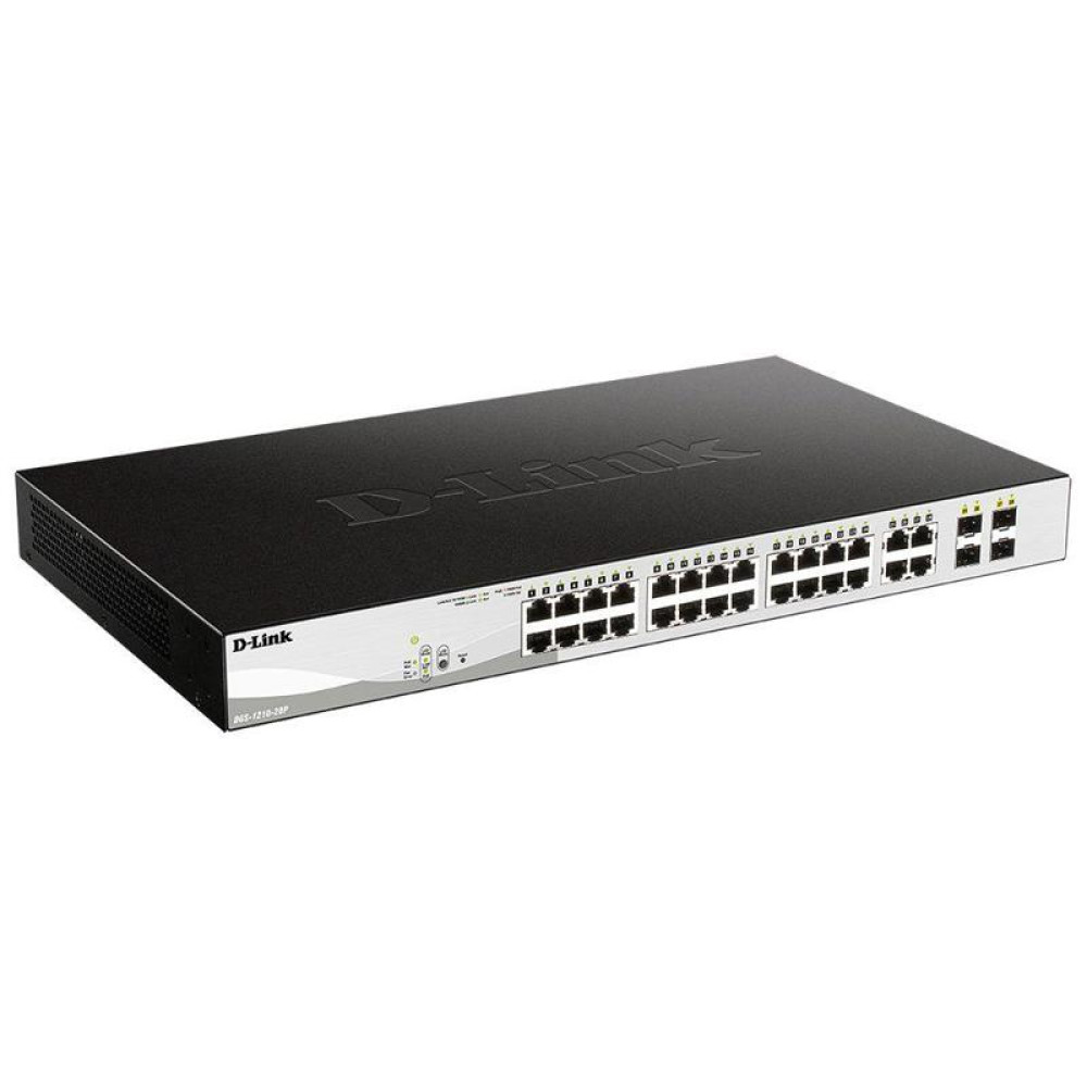 Коммутатор D-Link DGS-1210-28P/F 24x1Гбит/с 4xКомбо(1000BASE-T/SFP) 24PoE 193W управляемый