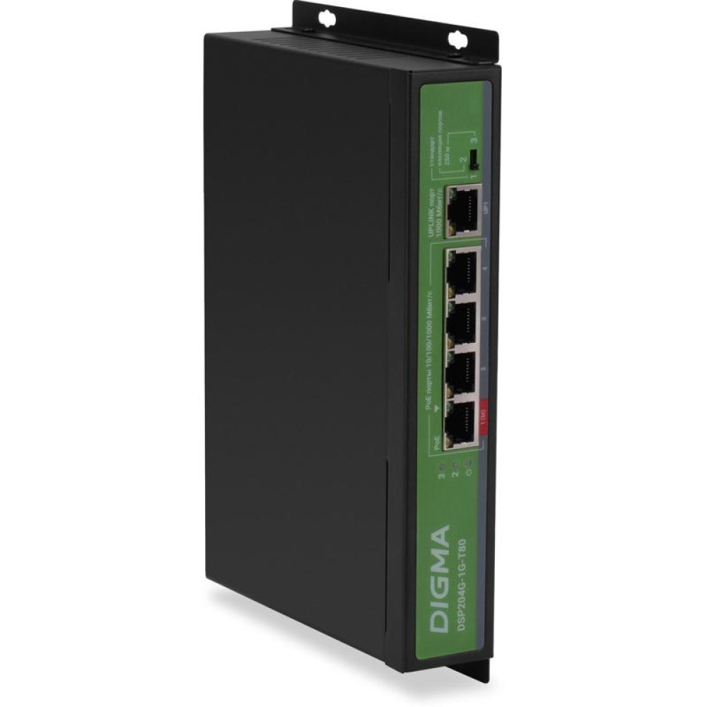 Коммутатор Digma DSP204G-1G-T80 (L2) 5x1Гбит/с 4PoE 4PoE+ 1PoE++ 80W неуправляемый