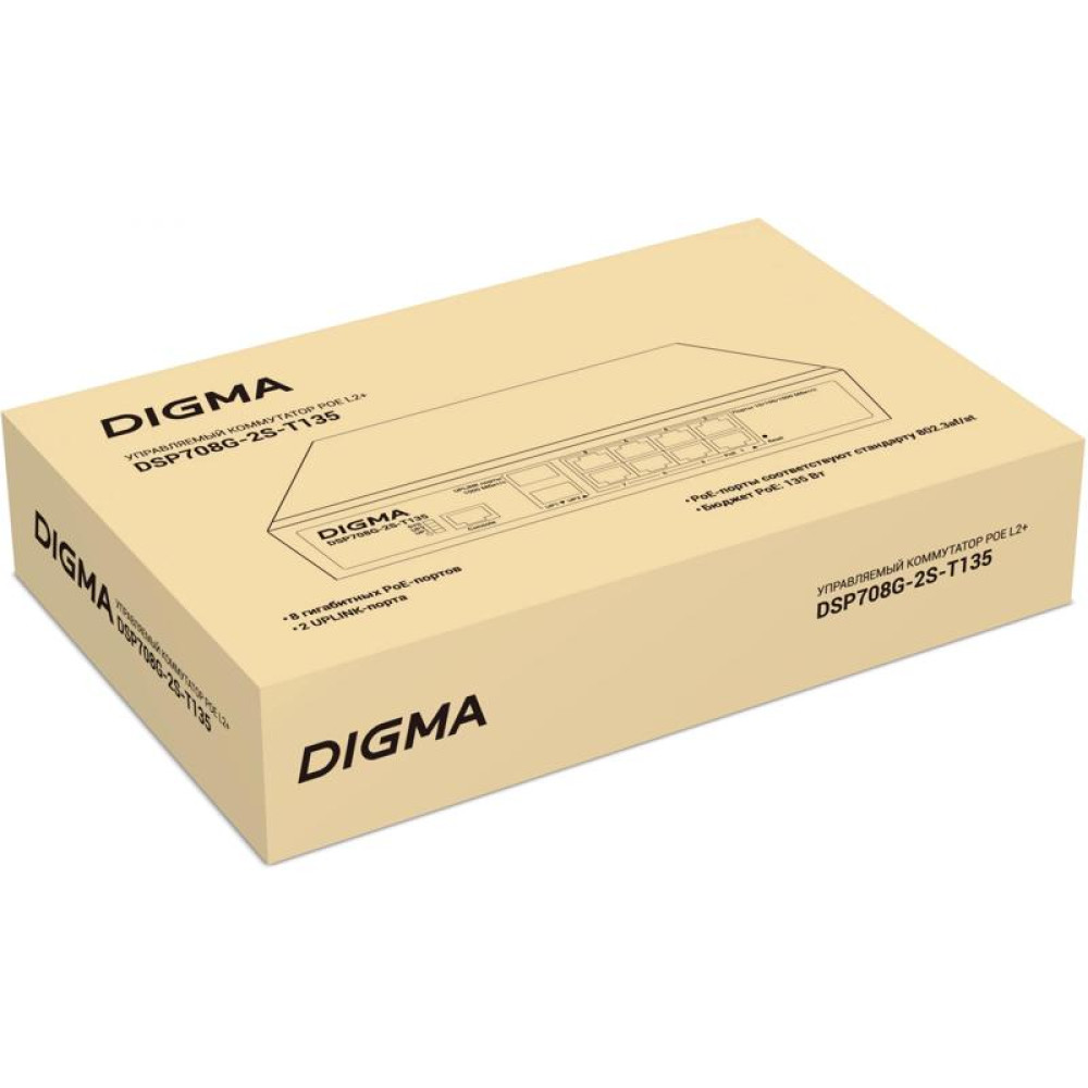 Коммутатор Digma DSP708G-2S-T135 (L2+) 8x1Гбит/с 2SFP 8PoE 8PoE+ 135W управляемый