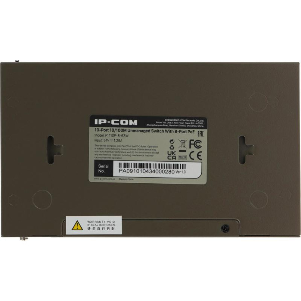 Коммутатор IP-Com F1110P-8-63W (L2) 10x100Мбит/с 8PoE 58W неуправляемый