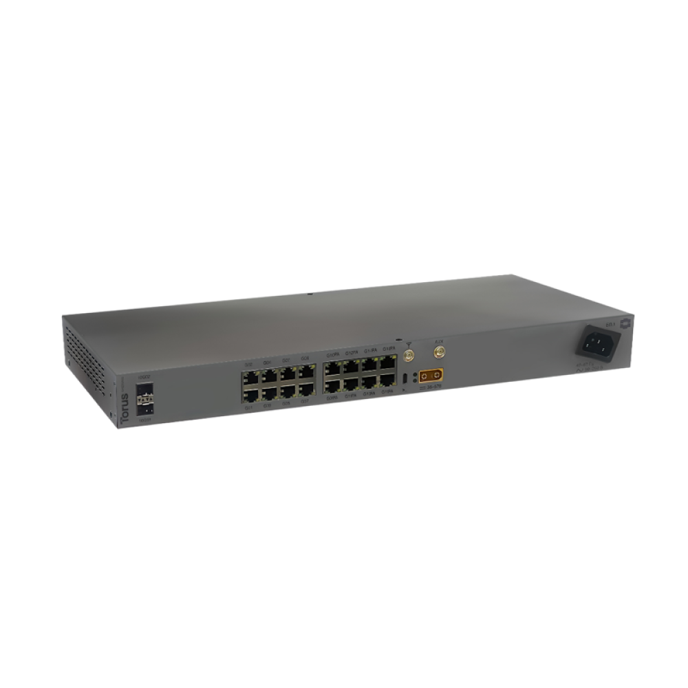 Коммутатор/ L3 управляемый коммутатор TORUS S1-1-16PL, 16х10/100/1000 Mbps RJ45, 2x 10 GbE SFP+ , LTE (wideband) CAT9, 4 eSIM, PoE 802.3af/at, Passive PoE 24-48v, Консольный порт USB Type C, 16к MAC-адресов, 1 встроенный БП, AC: 90–260 В, 50–60 Гц DC: 36-