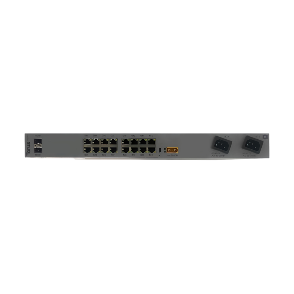 Коммутатор/ L3 управляемый коммутатор TORUS S1-2-16, 16х10/100/1000 Mbps RJ45, 2x 10 GbE SFP+ , Консольный порт USB Type C, 16к MAC-адресов, 2 встроенных БП, AC: 90–260 В, 50–60 Гц DC: 36-57 B