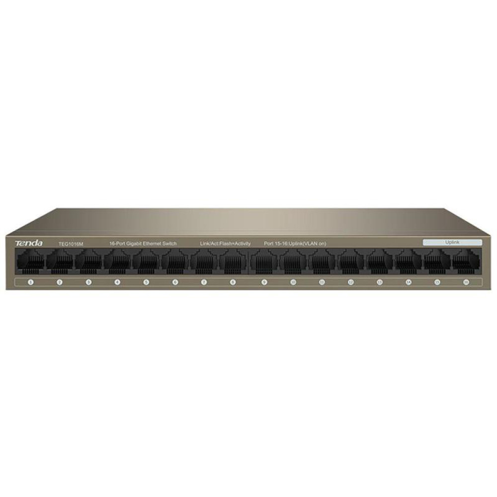 Коммутатор Tenda TEG1016M Коммутатор неуправляемый, 16 портов 16x1 Гбит/с, настольный, металлический корпус