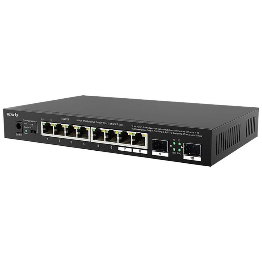 Коммутатор Tenda TEM2010F Коммутатор неуправляемый, 10 портов 10x1 Гбит/с, RJ-45 8х2,5 Гбит/с, SFP 2х2,5 Гбит/с, настольный, металлический корпус