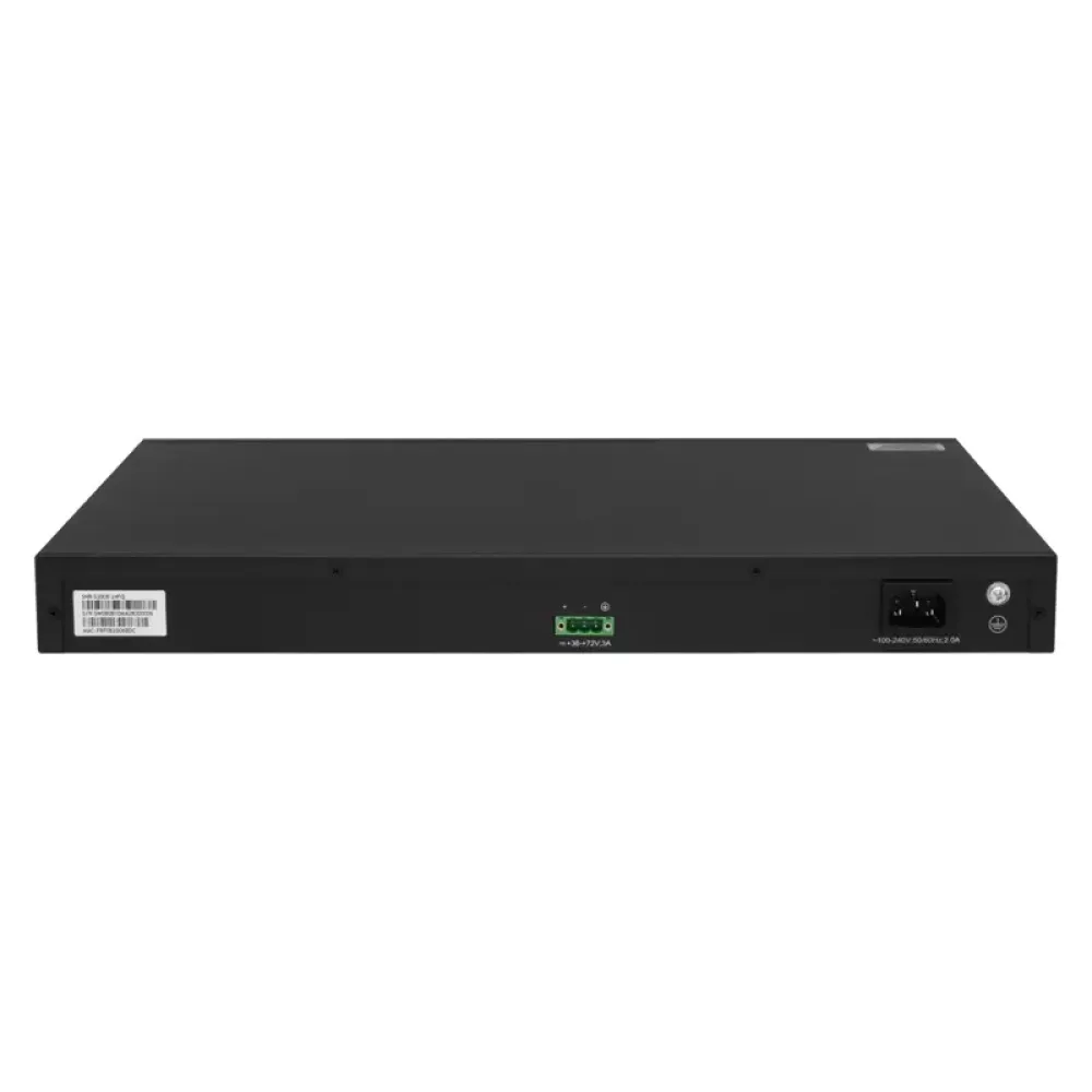 Коммутатор оснащён активной системой охлаждения и встроенным блоком питания с защитой от перенапряжений. Устройство гарантирует стабильную работу и защиту данных в условиях интенсивной эксплуатации.
