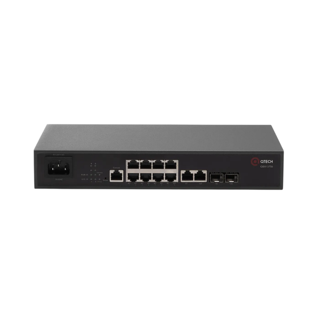 Qtech QSW-3750-10T-POE-AC — это управляемый коммутатор уровня L2+, предназначенный для использования в корпоративных сетях и сетях малого и среднего бизнеса. Он обеспечивает высокую производительность и надежность благодаря поддержке технологии PoE (Power over Ethernet), что позволяет передавать данные и питание по одному кабелю.