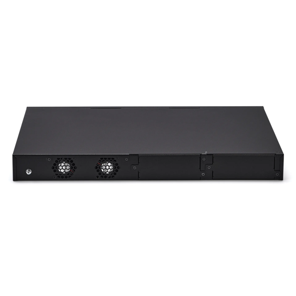 Коммутатор оснащен 2 сменными блоками питания с разъемами на задней панели, что обеспечивает высокую надежность и отказоустойчивость. Это особенно важно для корпоративных сетей, где простои недопустимы. Поддержка питания в диапазоне 100-240В AC позволяет использовать коммутатор в различных условиях и обеспечивает его стабильную работу.