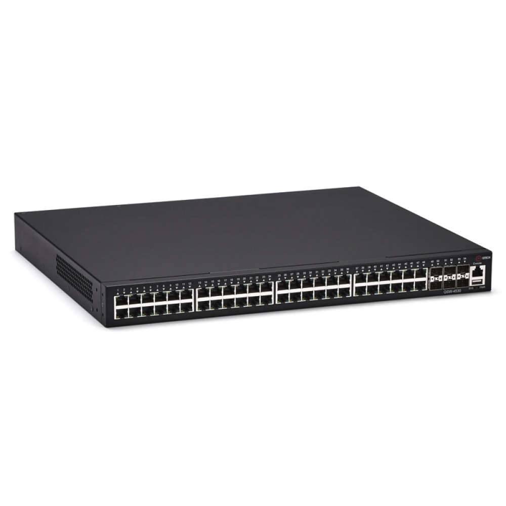 Qtech QSW-4530-54TX — это управляемый коммутатор уровня L3, предназначенный для использования в корпоративных сетях и центрах обработки данных. Он обеспечивает высокую производительность и надежность благодаря 48 портам 10/100/1000BASE-T и 6 портам 10GbE SFP+, а также поддерживает установку двух сменных блоков питания для повышения отказоустойчивости.