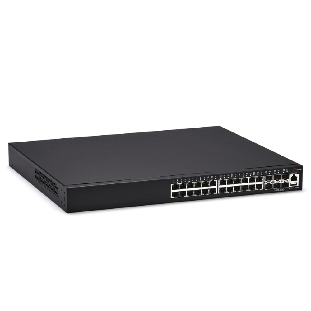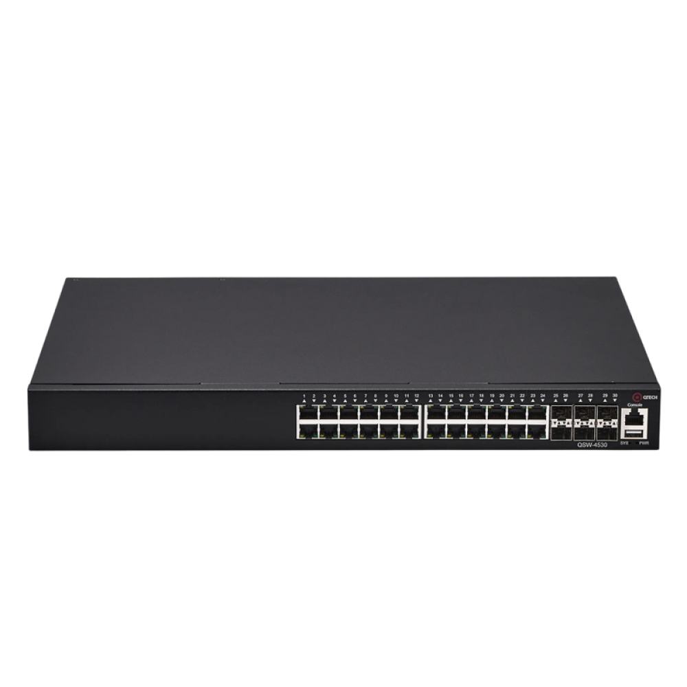 Qtech QSW-4530-30TX-POE — это управляемый коммутатор уровня L3, предназначенный для использования в корпоративных сетях и центрах обработки данных. Он обеспечивает высокую производительность и надежность благодаря поддержке технологии PoE (Power over Ethernet) стандартов 802.3af и 802.3at, что позволяет передавать данные и питание по одному кабелю. Коммутатор оснащен 24 портами 10/100/1000BASE-T и 6 портами 10GbE SFP+, а также имеет консольный порт для управления и два слота для установки сменных блоков питания на задней панели.