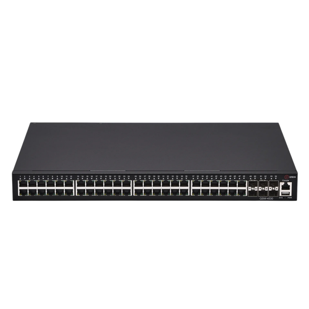 Qtech QSW-4530-54TX-POE — это управляемый стекируемый коммутатор уровня L3, предназначенный для использования в корпоративных сетях и центрах обработки данных. Он обеспечивает высокую производительность и надежность благодаря поддержке технологии PoE (Power over Ethernet) и множеству дополнительных функций.