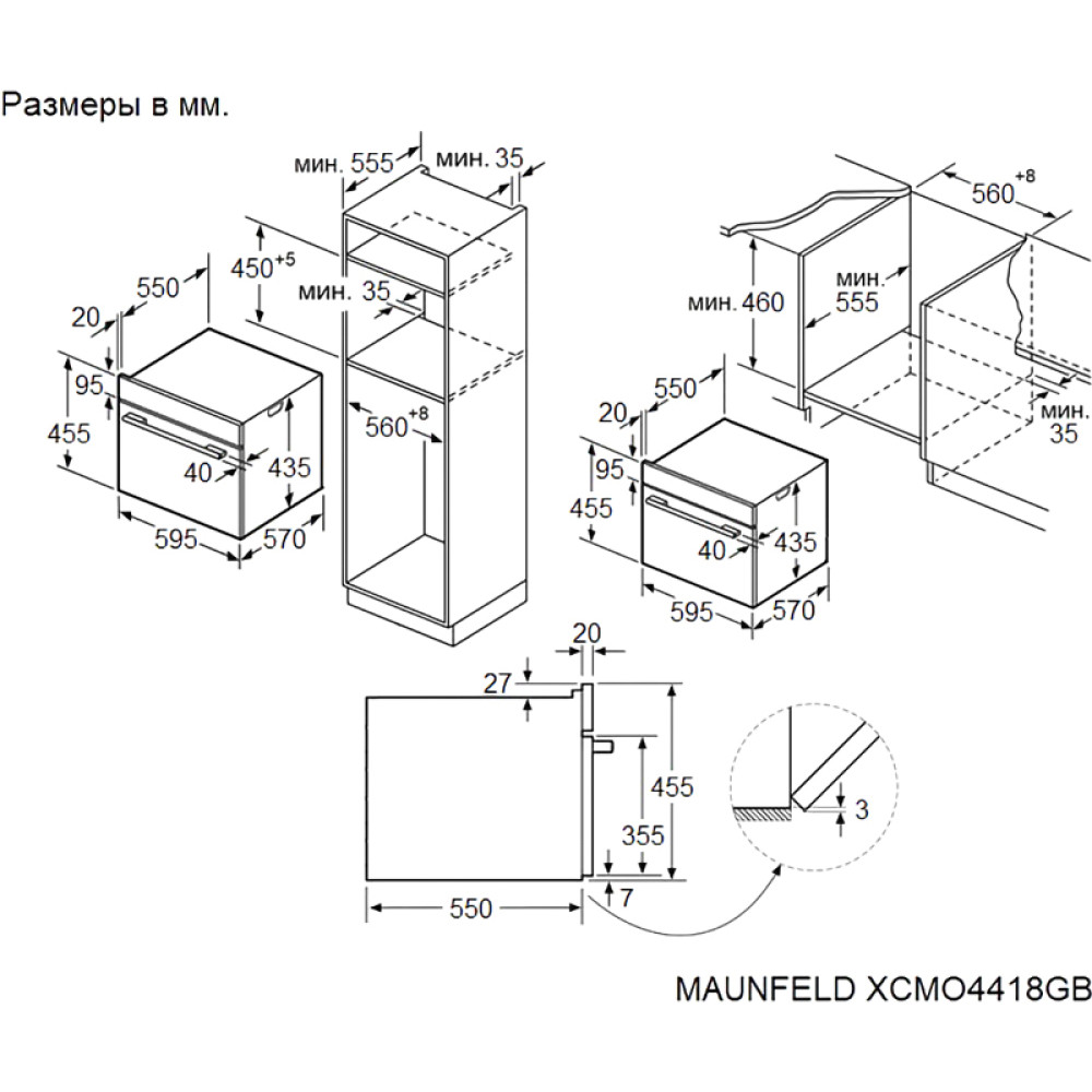 Компактный духовой шкаф, 14 режимов, 44 л, сенсорное управление, гриль, таймер, A+, черное стекло