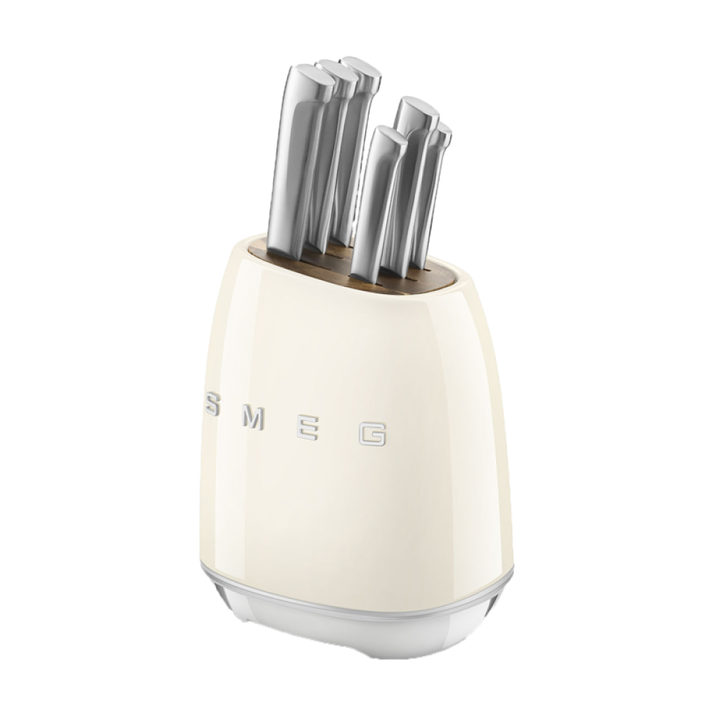 Каждая деталь блока ножей Smeg была разработана для обеспечения максимальной производительности и стиля, что делает его незаменимым помощником для тех, кто хочет готовить безопасно, точно и с долей элегантности.