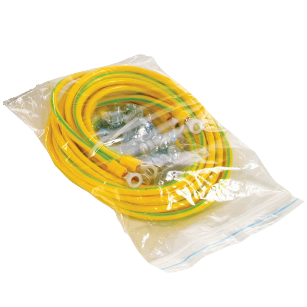Предназначен для заземления установленного оборудования к корпусу шкафа/стойки, а также для организации общего контура заземления. Включает набор проводов и фиксирующих гаек: 1. Провод заземления L=250мм. сечение 4мм.кв. (кольцевой наконечник-розетка) – 4шт. 2. Провод заземления L=150мм. сечение 4мм.кв. (кольцевой наконечник-кольцевой наконечник) – 4шт. 3. Винт М6х12 – 10шт. 4. Гайка зубчатая М6 – 10шт.