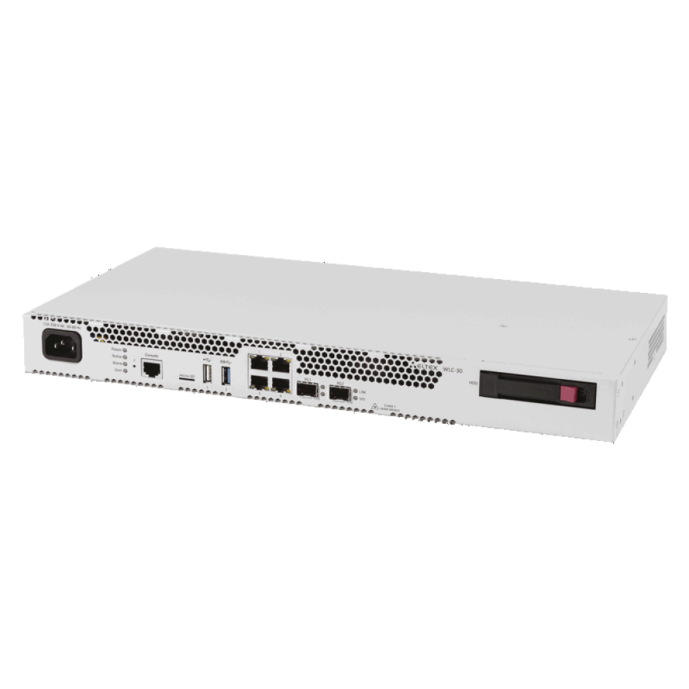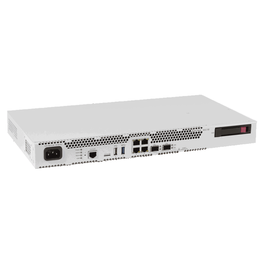 Контроллер беспроводных сетей WLC-30, 4x10/100/1000BASE-T, 2x10GBASE-R SFP+, 1x USB 2.0, 1x USB3.0, 1 слот для SD-карт, 220V AC, подключение до 150 точек доступа