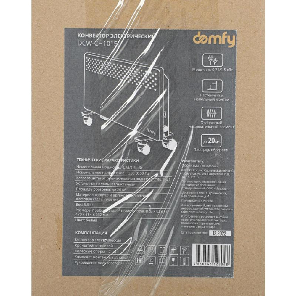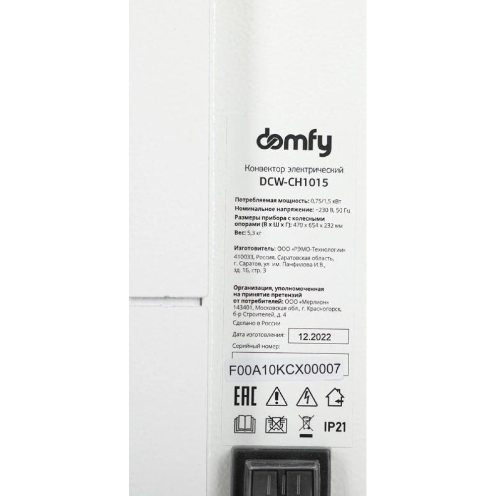 Конвектор/ Конвектор Domfy DCW-CH1015 1500Вт белый