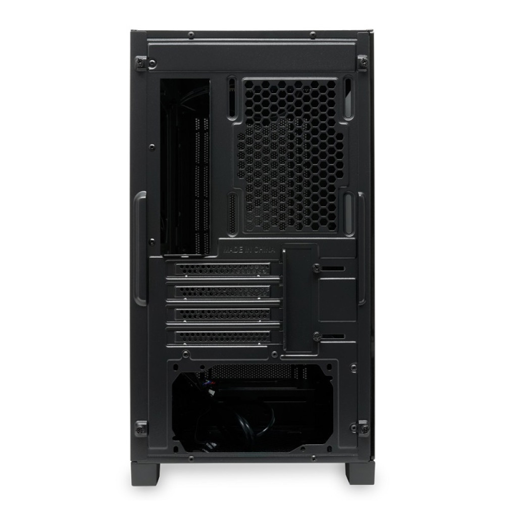 Хотя корпус поставляется без вентиляторов, он поддерживает установку дополнительных кулеров на переднюю, верхнюю и заднюю панели. Сетчатая передняя часть обеспечивает приток воздуха и способствует эффективному охлаждению системы.