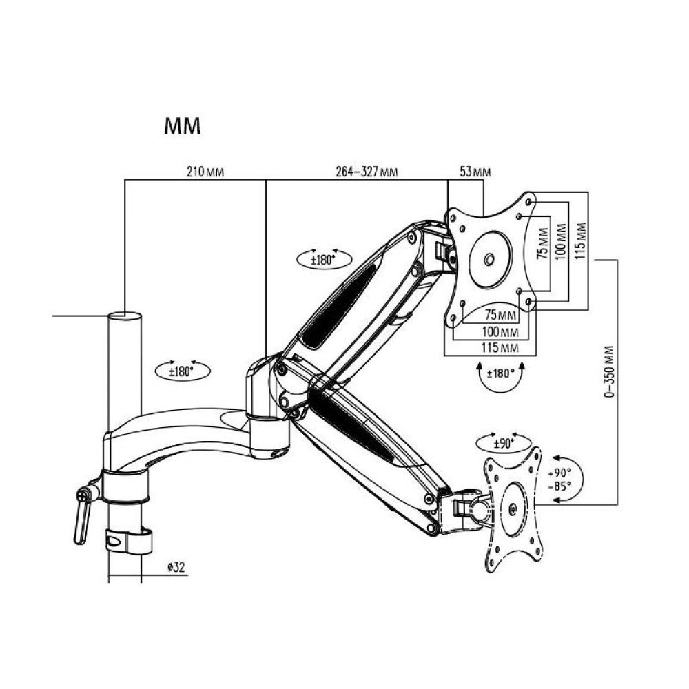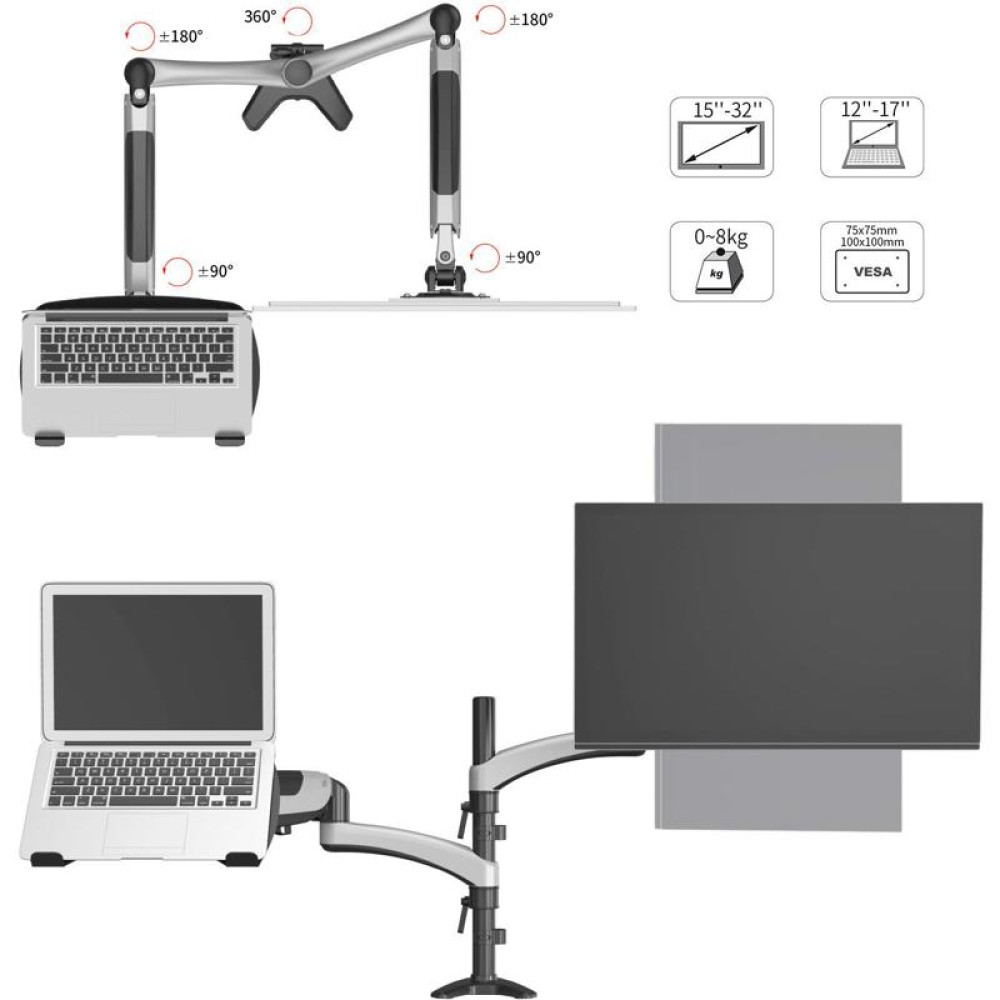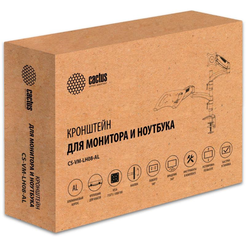 Кронштейн для монитора/ноутбука Cactus CS-VM-LH08-AL серебряный 13"-27" макс.8кг настольный поворот и наклон
