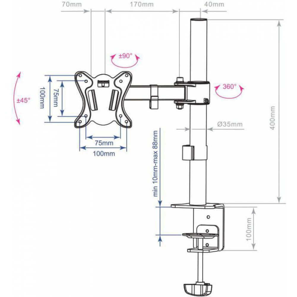 Кронштейн для мониторов Arm Media LCD-T11 черный 15"-32" макс.12кг настольный поворот и наклон верт.перемещ.