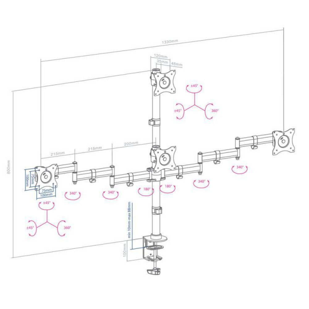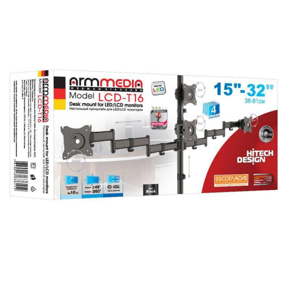 Кронштейн для мониторов Arm Media LCD-T16 черный 15"-32" макс.40кг настольный поворот и наклон верт.перемещ.
